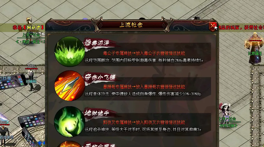 第二阶段(主力输出与小怪清理):主战士站在卡位位置持续使用烈火剑法输出,副战士辅助攻击;道士除持续加血外,需定期释放施毒术降低BOSS防御,神兽负责清理BOSS召唤的小血魔;法师使用冰咆哮进行范围输出,优先清理小血魔,避免其干扰主战士输出。