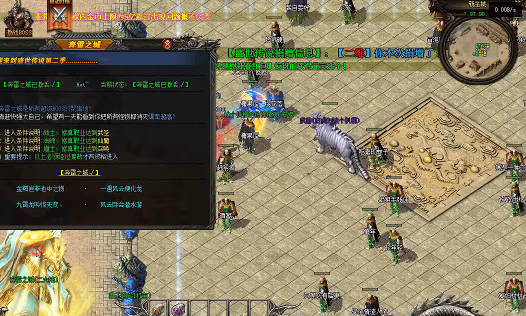 据点争夺阶段(20:30-21:30):城门攻破后,双方围绕复活点、密道等核心据点激战。攻城方采用“正面强攻+密道偷袭”战术,正面部队吸引守城方火力,派20-30人的精英小队从密道潜入沙巴克城内,偷袭守城方后方;守城方需分兵防守密道入口与复活点,避免被两面夹击。