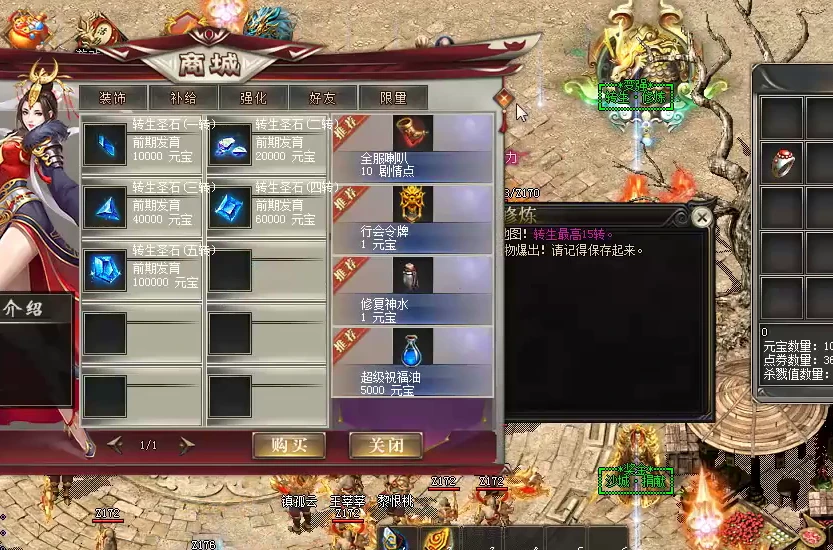 2、商城买装备