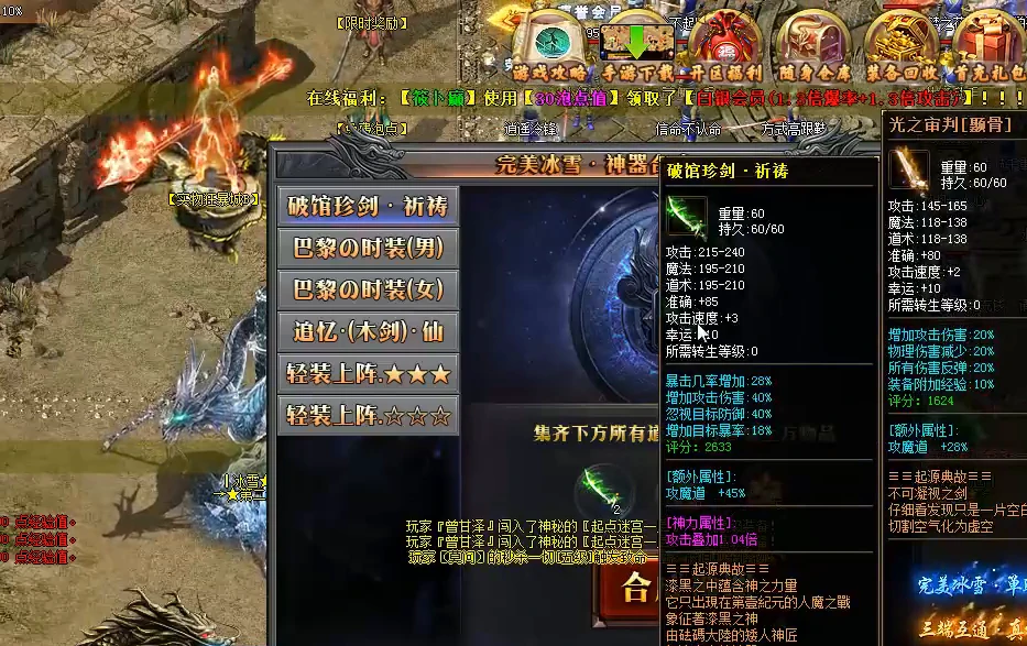 在需要强化控制与辅助的场景中,道士可选择“灵魂套装+降妖除魔戒指+龙纹剑”的搭配。灵魂套装(灵魂项链、灵魂手镯、灵魂戒指)可提升道士的施毒术持续时间至20秒,同时增加群体隐身术的覆盖范围至4×4;降妖除魔戒指(魔法防御0-4,道术0-2)能提升道士的魔御能力,避免被敌方法师快速击杀;龙纹剑则保证了召唤神兽的输出与抗伤能力,让道士在辅助的同时,也能提供一定的输出压力。