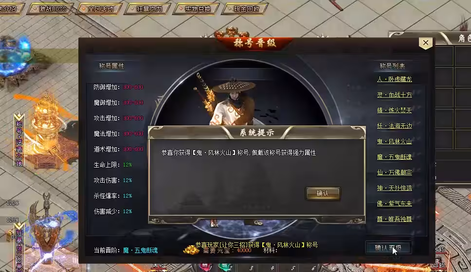 | 额外奖励 | 击杀怪物数量前10 | “御敌先锋”称号(攻击+5,防御+5,持续7天) | 中高 | 系统邮件发放 |