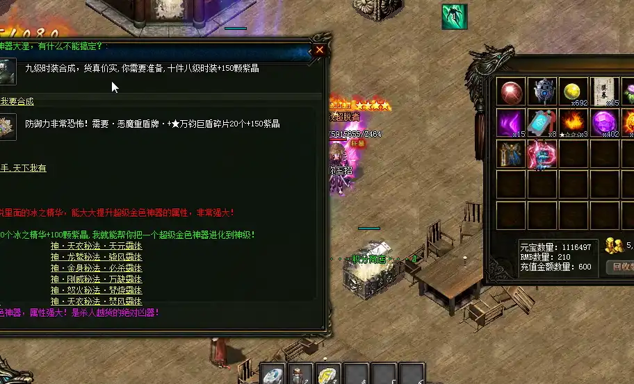 超变版本:核心玩法为快速提升战力与全屏PK,羽翼、坐骑、神装碎片类奖励价值极高,便捷功能特权可进一步提升成长速度。例如龙城传奇超变版,满级VIP的羽翼可提升全属性100-100,神装碎片可快速合成终极装备,奖励价值集中在“快速登顶战力巅峰”上。