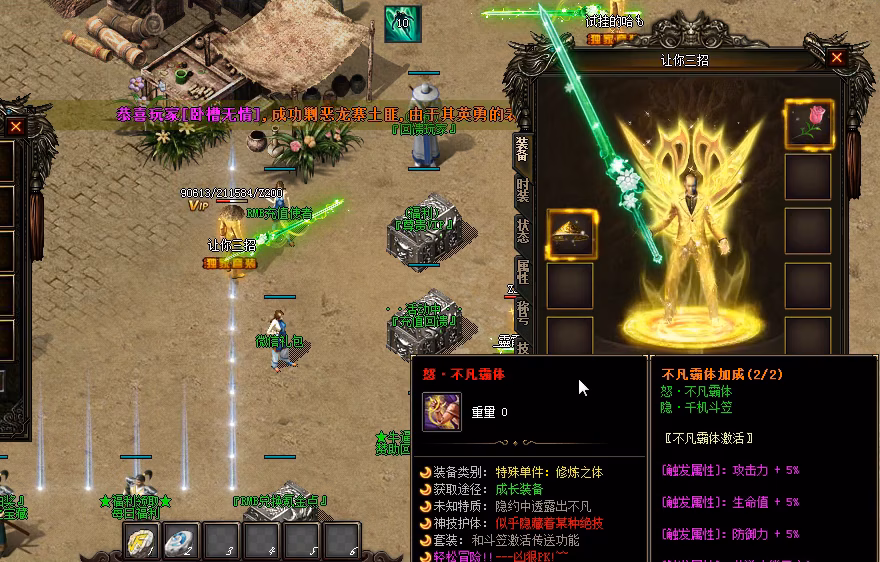 | 获取顶级神器(屠龙/嗜魂/逍遥扇) | 全服震动、围观祝贺、交易邀约不断 | 团队协作能力提升、成就感满足 | 组队挑战BOSS的紧张、神器掉落的狂喜 | ★★★★★ |