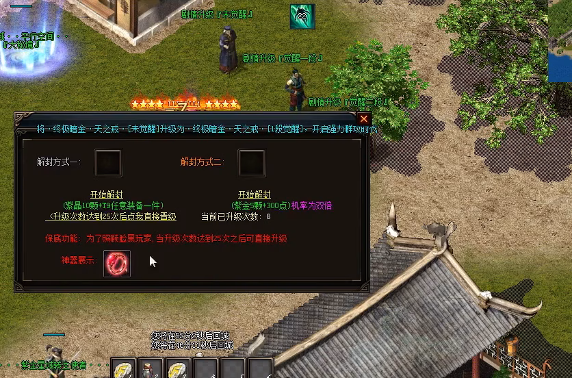 | 中级(祖玛教主) | 800/50000 | 固定5000点+10%倍率 | 6000-6500点 | 25分钟 | 2-3人 |