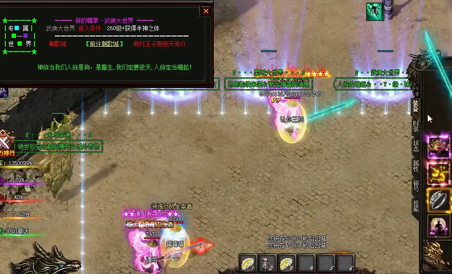 超变合击版本新增“能量快充”道具与专属技能,进一步缩短攒能周期。核心策略:使用“烈火能量丹”(使用后立即获取50点能量,冷却30秒),搭配“极速攒能技能”(激活后10秒内能量获取翻倍);装备选择“开天剑”(能量+40%)+“神装套装”(能量获取+30%),叠加后能量获取效率提升70%。实测显示,激活极速攒能技能+使用烈火能量丹,战士可在2秒内从0点攒至100点能量,实现“瞬间烈火爆发”,适合高强度的团战攻坚与跨服PK。