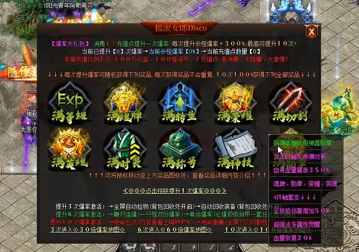 | 6级 | 300 | 沙巴克驻地、行会庆典 | 200000 | 沙巴克统治、税收获取 | 500000 |