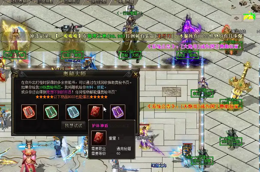 私服版本对探测项链的功能进行了大量拓展,除核心定位功能外,新增多种实用属性:一是部分私服支持“全服玩家位置滚动提示”,佩戴后可自动接收全服玩家的位置变动信息,无需手动输入指令;二是部分超变私服新增“怪物探测”功能,可探测高级BOSS的刷新位置(官服仅能探测玩家);三是部分私服设置了“探测冷却时间”(如10秒/次),但提升了探测范围,可跨地图探测无需切换场景。此外,私服中探测项链的获取难度大幅降低,部分版本可通过商城直接购买或活动免费领取。