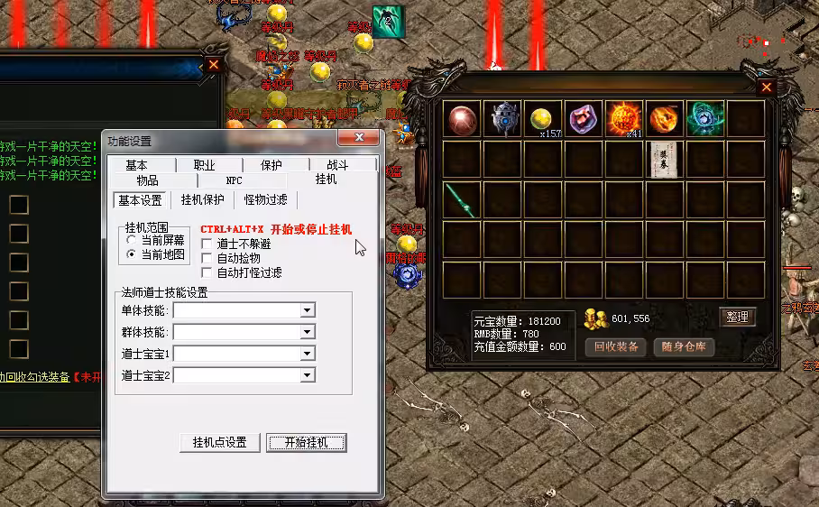 | 前期过渡 | +1格 | 5×5格(3级技能) | 180-220点 | 蜈蚣洞、沃玛寺庙刷怪 | 低(150-200元宝) |