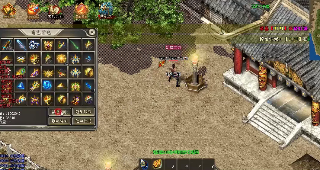 | BOSS争夺(祖玛教主) | 法师 | 群体技能攻击BOSS和小怪 | BOSS血量≤20%、敌方玩家被清理时 | 快速击杀BOSS,获取祖玛装备 |