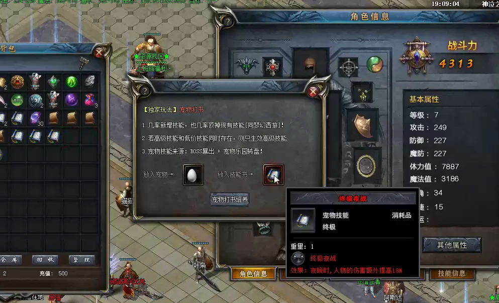 | 道士 | 攻击、召唤兽、施毒、治疗 | 灵魂火符5点,召唤兽1点/次 | 2.8-3.2分钟 | 道怒头盔(120点)、圣言项链(120点) |