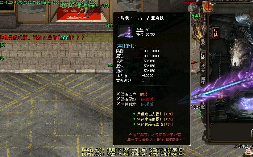 武器方面,我们选择了攻击下限与上限较为均衡的“炼狱”(攻击0-25),以避免攻击浮动过大影响测试观察。为了排除幸运值对最大攻击发挥的影响,我们暂时未配置幸运项链。