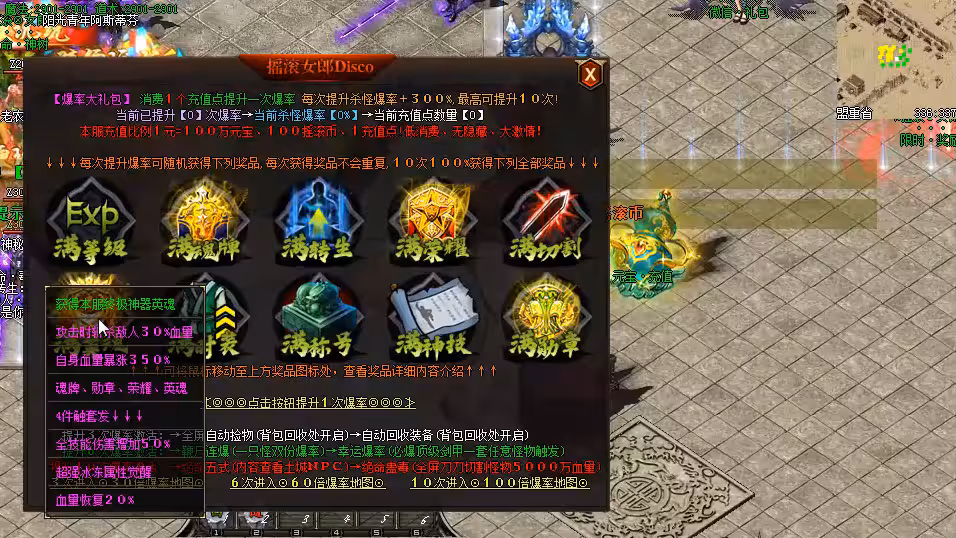 | 6级 | 300 | 沙巴克驻地、行会庆典 | 200000 | 沙巴克统治、税收获取 | 500000 |