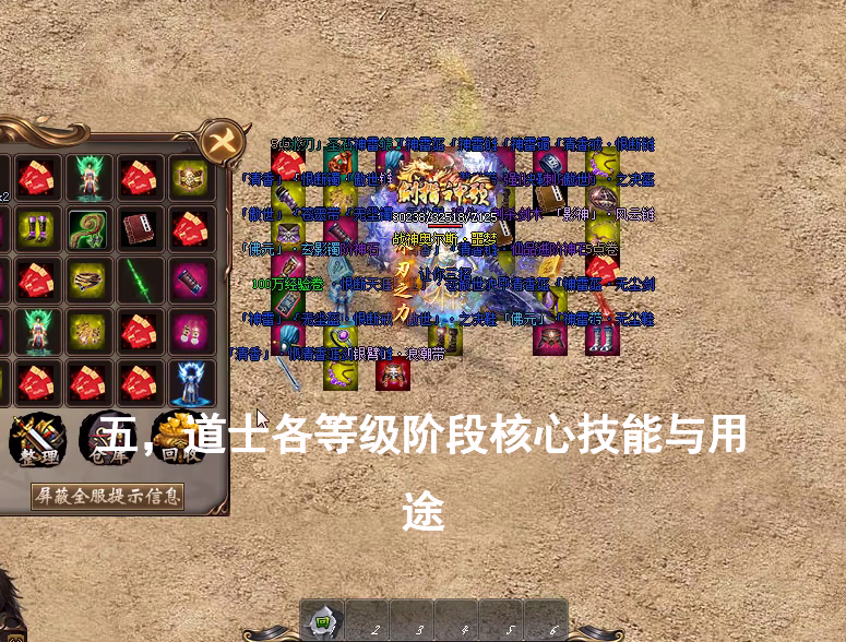 | 祖玛阁 | 全道术装+负重药 | 6-8 | 3-4(祖玛装备) | 8(怪物密集) |