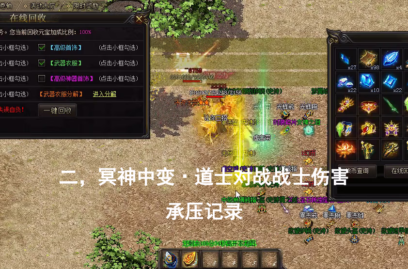 | 15级道术防御 | 烈火剑法180 | 58 | 6次 | 52秒 |